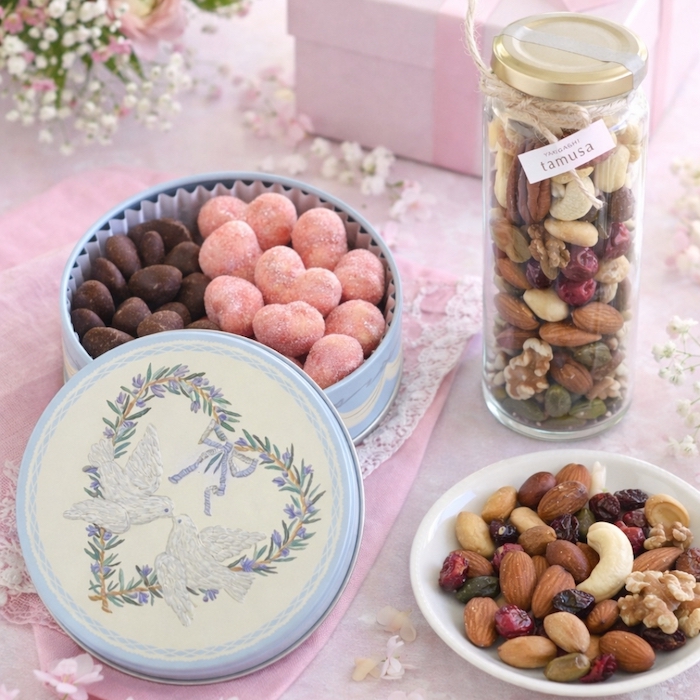 リースショコラの華やかさと、素焼きナッツの素朴な美味しさ。