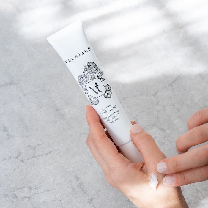 リピート率高!食べるもの・飲むものと同じくらいきめ細やかに、 原料、そして製品の品質を追究しておつくりしたベジターレのセラムハンドクリーム。生薬として活用されてきた国産植物から抽出した上質な成分を贅沢に配合し、しっかり潤うのにべたつかないセラム処方。