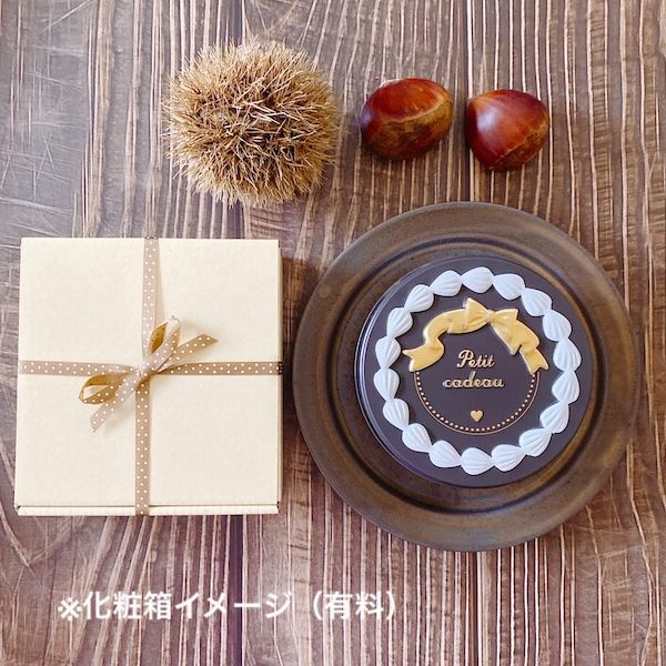 こっくりとした栗色に、クリームのデコレーション。リボンでおめかしした、ちょっとおすまし顔の美味しそうなケーキ缶はご自分用にも、大切な方への贈り物にもぴったりです。